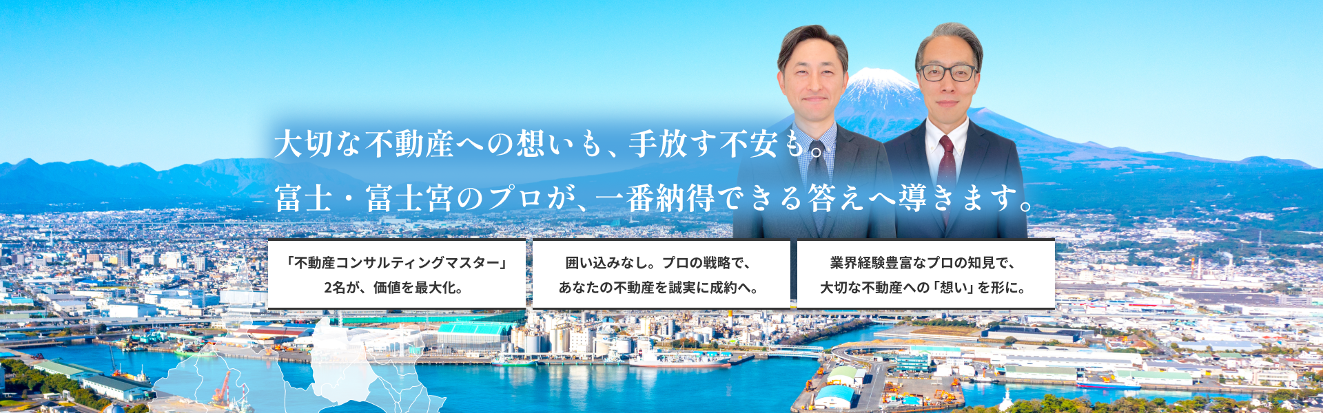 - 「少しでも高く」というご希望を最優先に、物件ごとの個別戦略を立案します。大手ポータルへの掲載や自社サイトでの魅力発信に加え、不動産会社・銀行等との豊富な人的ネットワークをフル活用。富士市・富士宮市も含む地域密着の強みで、高値成約を強力に後押しします。